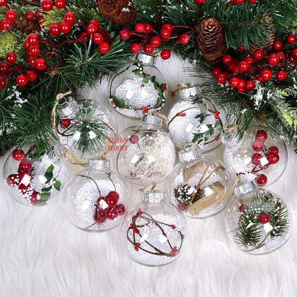 - 10種不同款式設計,高清透明聖誕樹掛飾, 內部裝有各種精美的季節性裝飾品,包括人造雪、紅漿果、Pip 漿果、松針、冷杉葉、雪松葉、迷你松果、綠葉,形成了一個系列微型雪景。