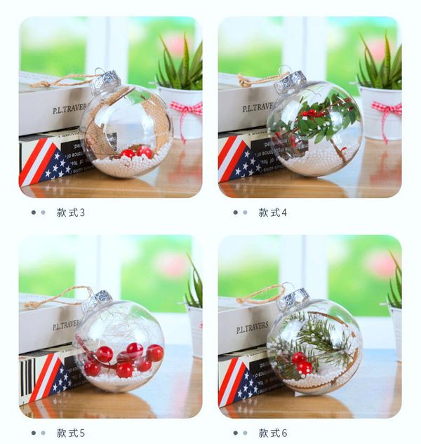 - 10種不同款式設計,高清透明聖誕樹掛飾, 內部裝有各種精美的季節性裝飾品,包括人造雪、紅漿果、Pip 漿果、松針、冷杉葉、雪松葉、迷你松果、綠葉,形成了一個系列微型雪景。