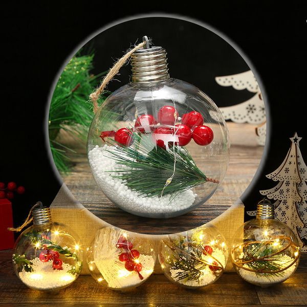 - 高清透明聖誕樹掛飾, 內部裝有各種精美的季節性裝飾品,形成了一個系列微型雪景。