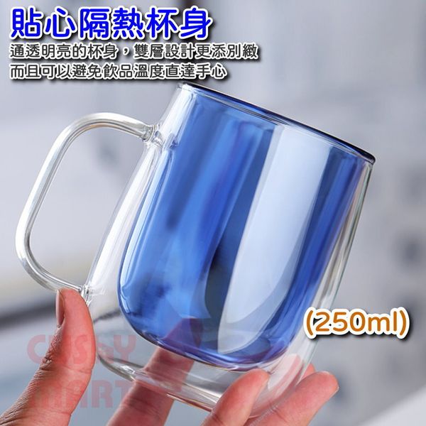 AGERU-"藍色"雙層玻璃杯連杯蓋款(250ml)[藍色+透明色]