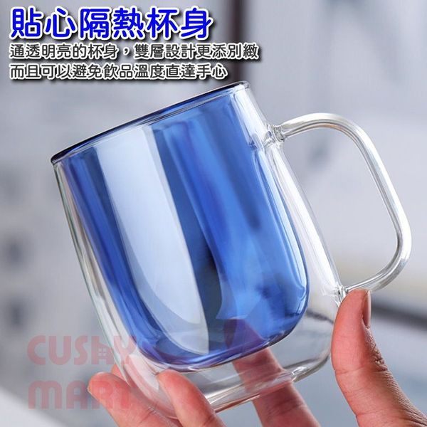 【雙層絕緣設計】絕緣玻璃咖啡杯採用雙層玻璃設計,觸感涼爽,不會灼傷手指,可將飲品長時間保持在理想溫度。