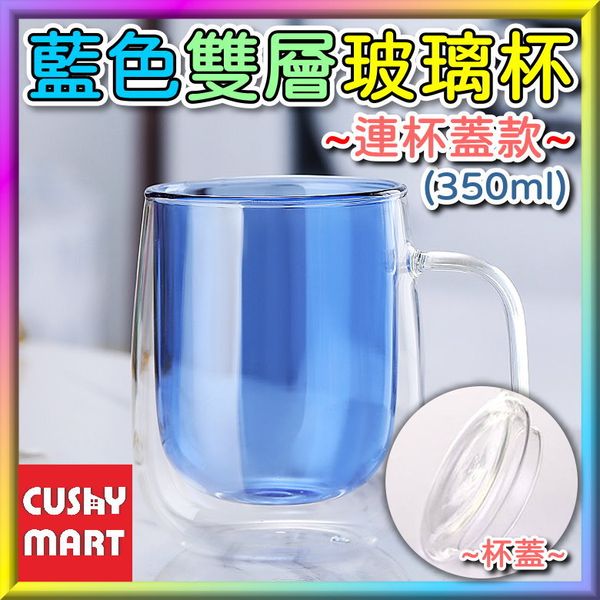 AGERU-"藍色"雙層玻璃杯連杯蓋款(350ml)[藍色+透明色]