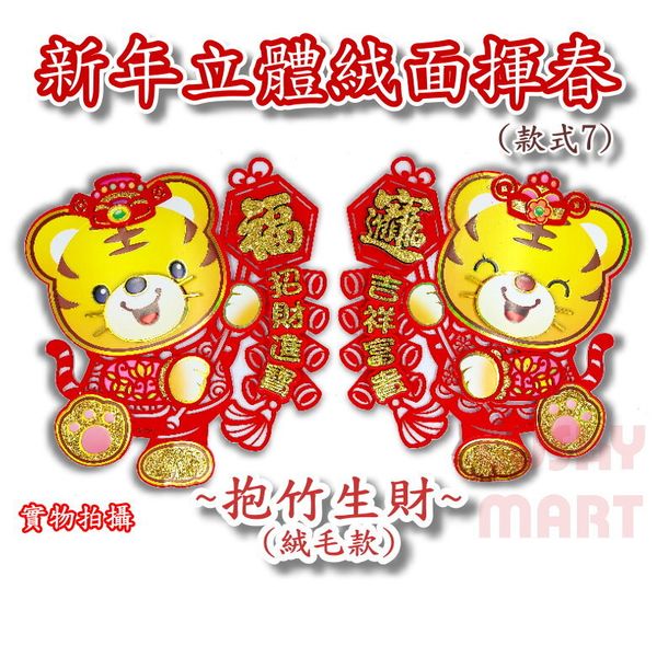 AGERU-新年立體絨面揮春-抱竹生財(款式7)[1對]