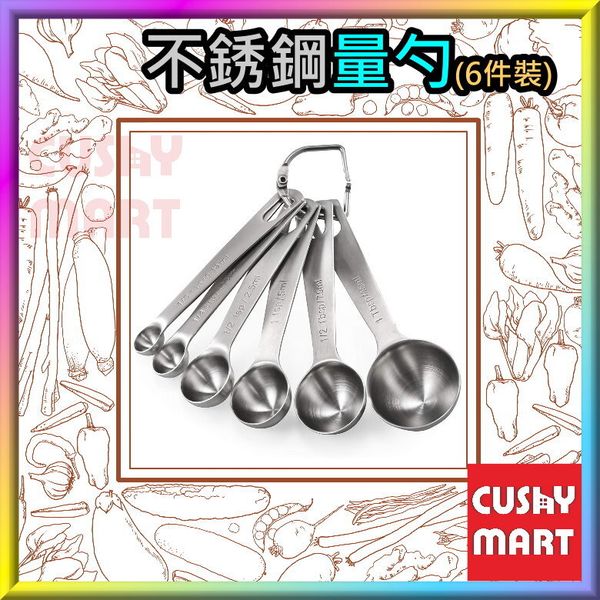 勺子數量:1 x 1/8 茶匙、1 x 1/4 茶匙、1 x 1/2 茶匙、1x 1 茶匙、1 x 1/2 湯匙和 1 x 1 湯匙