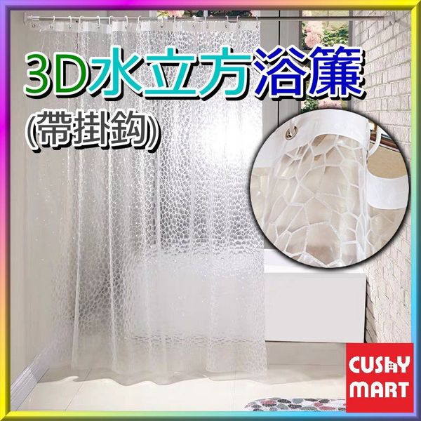 AGERU-"3D水立方"半透明浴簾 (帶掛鈎)[180cm x180cm]|防水印花浴簾|窗簾|擋光簾|隔離布