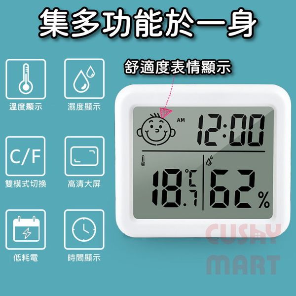 【空氣舒適度指示圖標】濕度溫度計具有面部圖標,可快速指示乾燥/舒適/潮濕的空氣狀況,以通知您相應地調整加濕器或除濕器,以創造更舒適的環境。