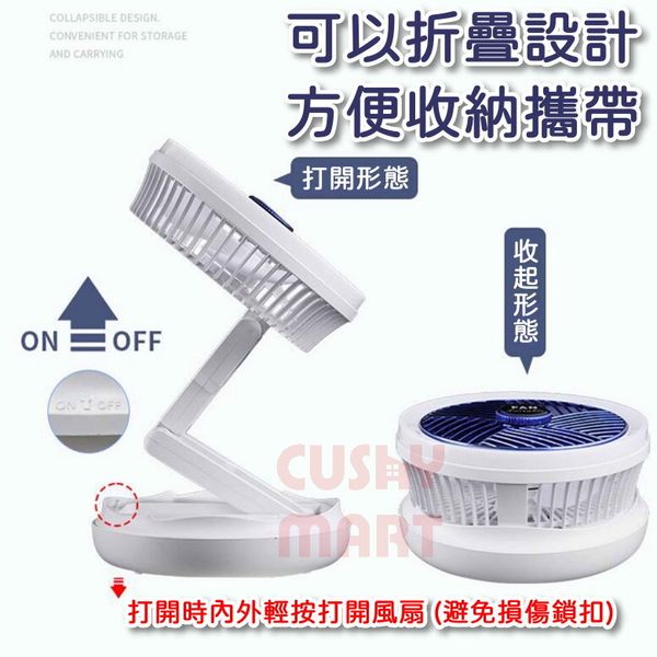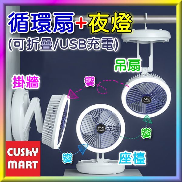 Metis-USB無線折疊式循環扇帶夜燈(可充電/4檔風速調節電風扇/座檯式/掛牆式/吊掛式)