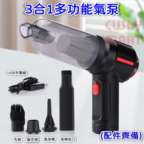 【三合一多功能吸塵器】手持吸塵器可用於家庭/辦公室/汽車/浴室/地毯/鍵盤吸塵;可作為充氣泵給游泳圈充氣;可用作衣服、床墊、毯子、枕頭的真空泵。