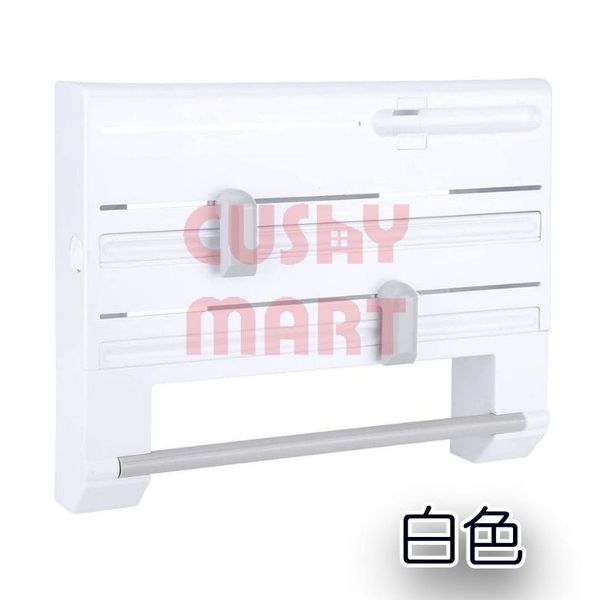 [易於安裝使用]:可以安裝在牆壁、冰箱、廚櫃上。存放紙巾、保鮮紙、鋁箔紙垃圾袋、膠紙和香料瓶,能節省大量空間收納您的廚房必需品。