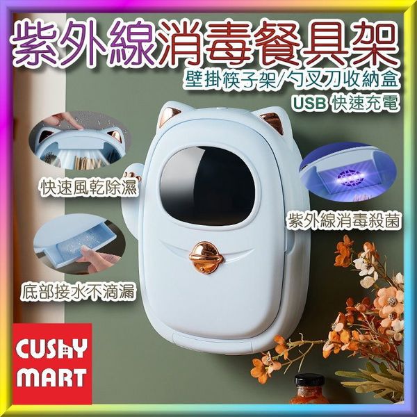 AGERU-掛牆式紫外線消毒餐具架 (天藍色款)