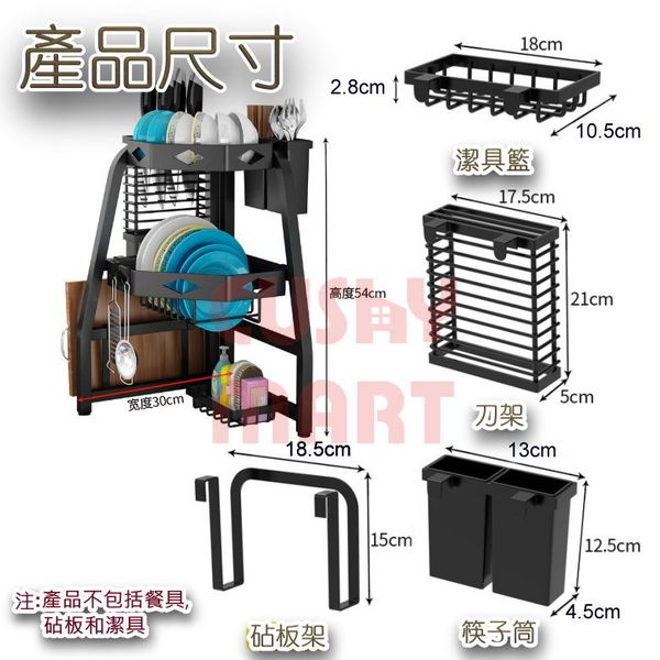 ✿【多合一,超大容量】瀝水架的三層空間,可以組裝出備有一個碗架、一個碟盤架、一個兩格的筷子/餐具架、一個刀具架、一個砧板架、一個潔具籃及四個掛鉤,提供大容量的儲物收納空間。水槽瀝水架可以收納碗、盤子、筷子、勺子、砧板、鍋蓋、毛巾、刀具、洗碗海綿、洗滌器、調味罐和其他小物件。
