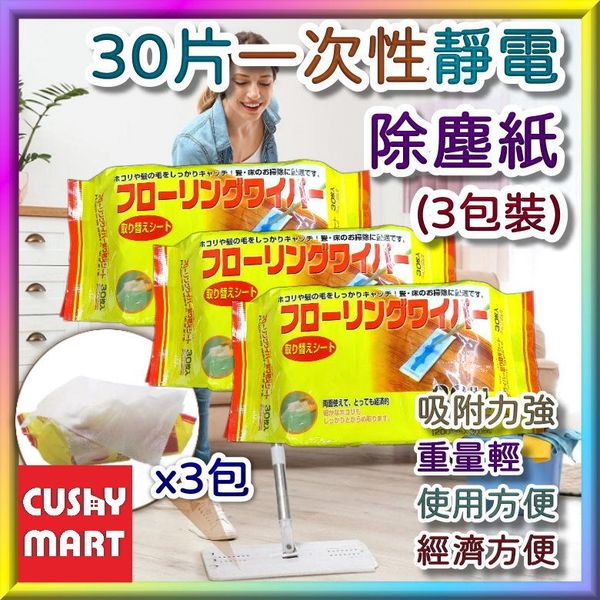 優柔百貨-【3包x30片(共90片)】日式一次性靜電拖把專用除塵紙|一次性靜電除塵紙|一次性無塵紙 (平行進口)