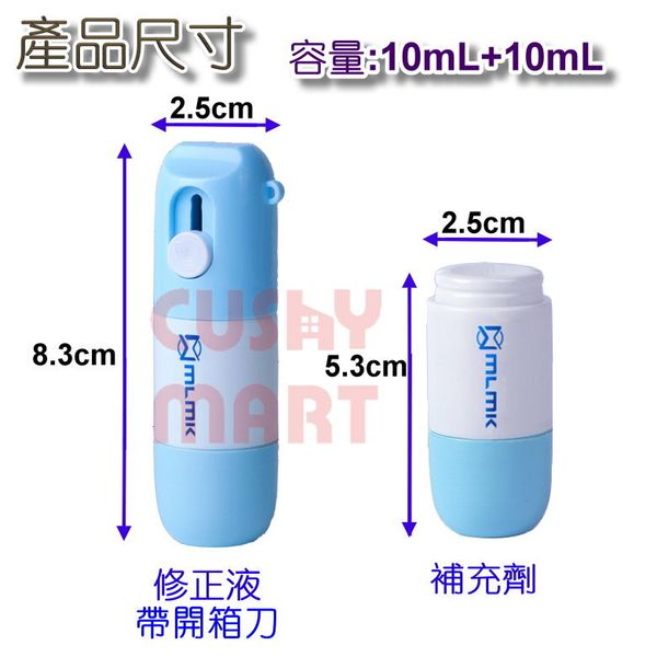 優柔百貨-"MLMK"2合1熱敏紙資料刪除液帶開箱刀(連補充液)套裝[平行進口]