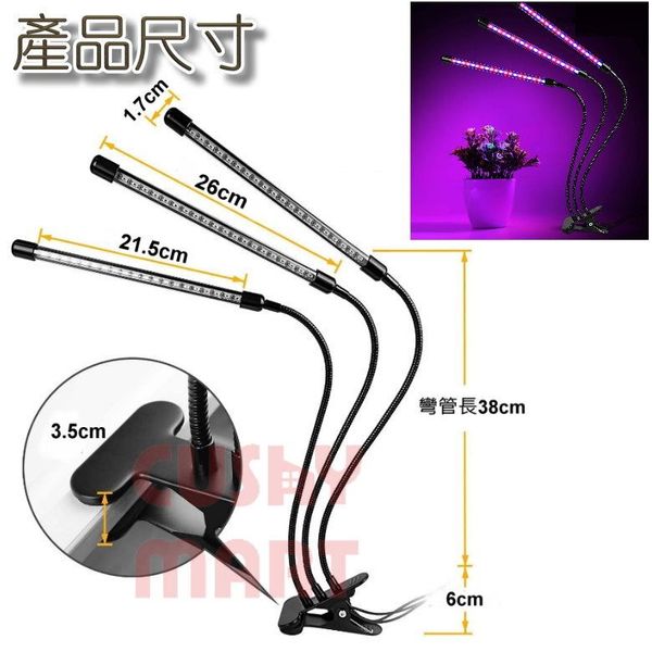 【獨特的設計和靈活的使用】室內全光譜植物生長燈,由 360° 可調旋轉燈柱、穩定堅固的強力夾子底座和鋁製外殼燈組成。夾子使用方便,不使用時可以緊緊折疊以節省空間。