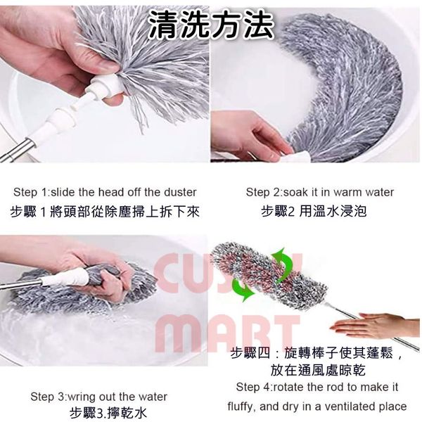 [可伸縮除塵掃]:這款伸縮除塵掃可延長至 276cm。將掃頭延長至您需要的長度。對於不同高度的清潔工作,只需這款家用清潔工具就足夠了。