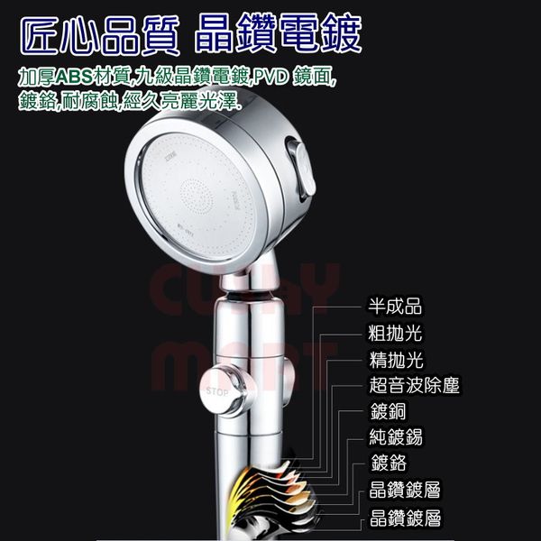 【材質】加壓淋浴噴頭採用優質ABS和鉻合金製成,堅固耐用,永不褪色。花灑頭內建PP棉過濾器,位於手柄末端,具有防堵塞和淨水功能,可有效去除自來水中的殘留氟和雜質。 提高淋浴水的清潔度,帶給您最奢華的水療淋浴體驗。