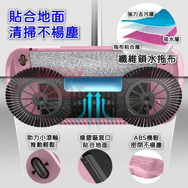 AGERU-手推式掃地器|乾濕兩用掃拖吸塵器|掃地拖地吸塵機(附抺布2塊)[粉紅色]