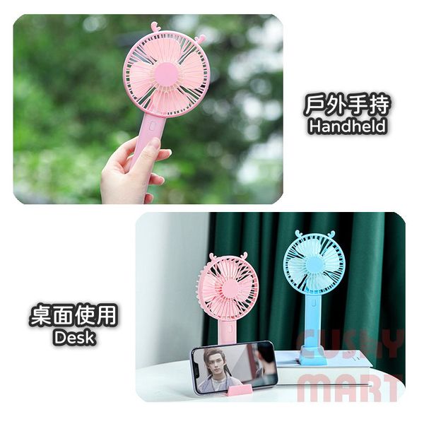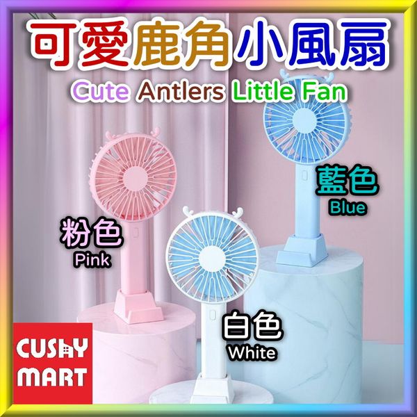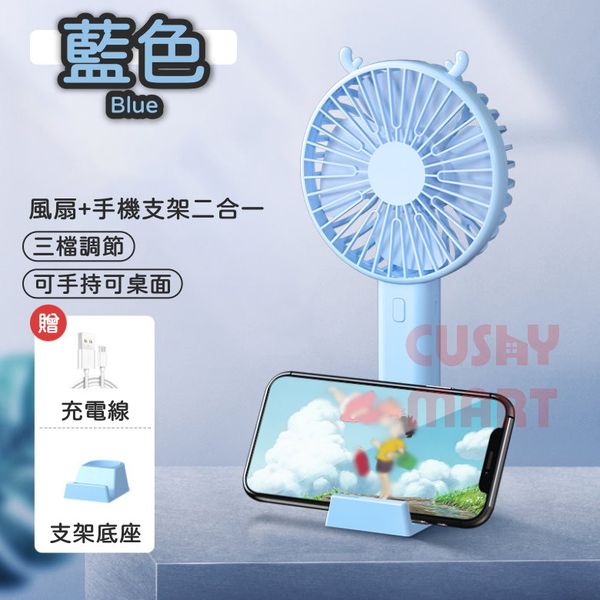 AGERU-可愛鹿角便攜式小風扇|座枱小風扇|手持迷你小風扇|USB輕便手持風扇 (藍色)