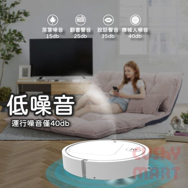 🔇[低噪音]掃地機器人的分貝為40db,聲音很小,不會打擾您的學習工作和睡眠,您可以放心使用。