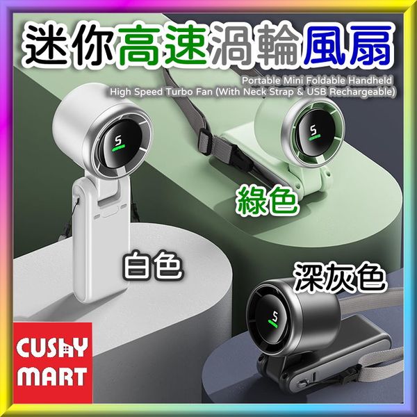 AGERU-便攜式迷你可折疊手持高速渦輪風扇|USB充電手持風扇|手提風扇(附掛頸繩)【深灰色】