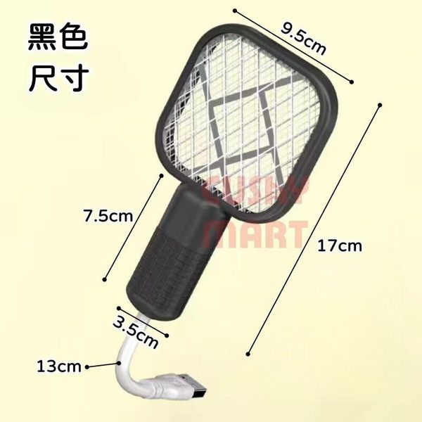 AGERU-迷你2合1電蚊拍誘蚊燈(USB即插即用款)|二合一迷你誘蚊電蚊拍|迷你電蚊拍|迷你滅蚊器【黑色】
