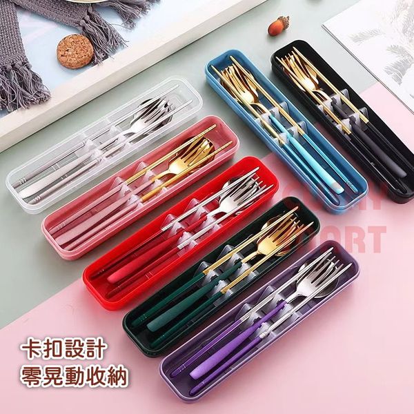 【耐用且防生銹】這套餐具包含勺子、叉子、筷子及收納盒,均由不銹鋼製成,表面經過加硬處理,有效避免在使用過程中刮傷。這種優質材料不僅耐用,還能確保長期使用後依然保持良好的狀態。