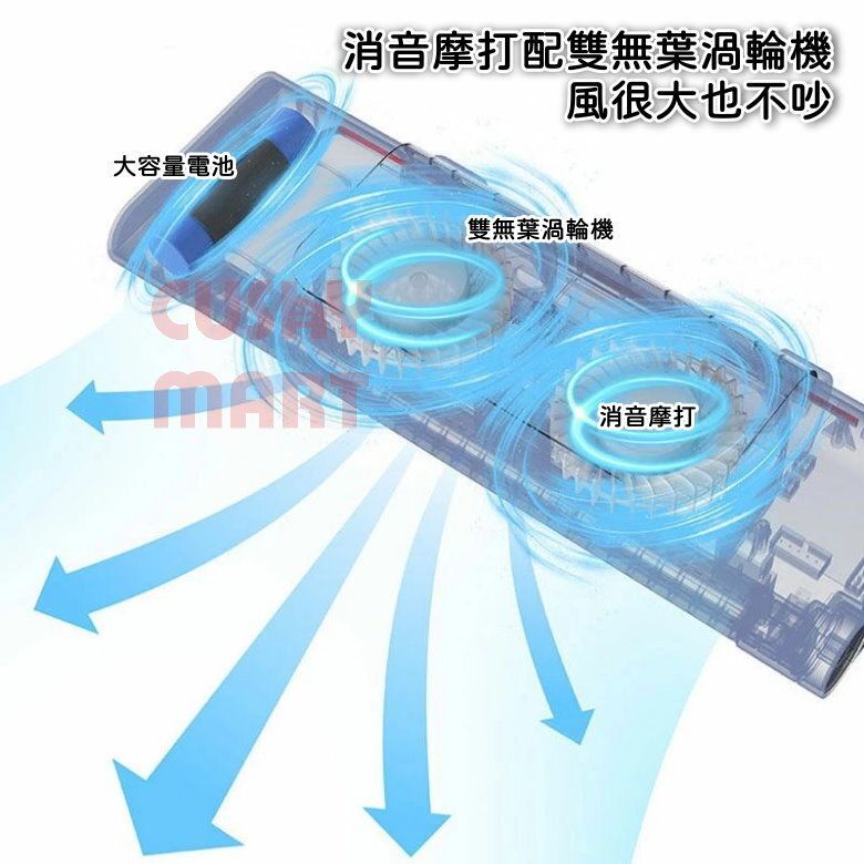 【安靜運轉】配備消音電機,雙編織無噪音渦輪,無段風速可調,運作時保持安靜,適合工作和睡眠。