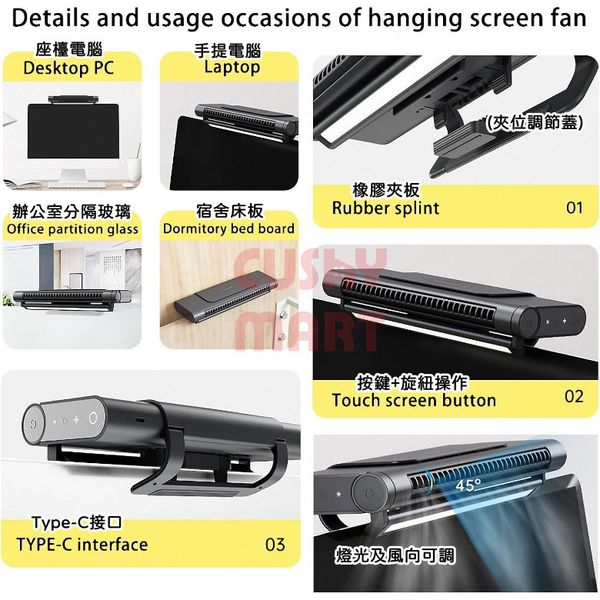 【螢幕風扇】適用於桌上型電腦、筆記型電腦、辦公室隔間玻璃、宿舍床板等,無損害且不佔桌面空間。