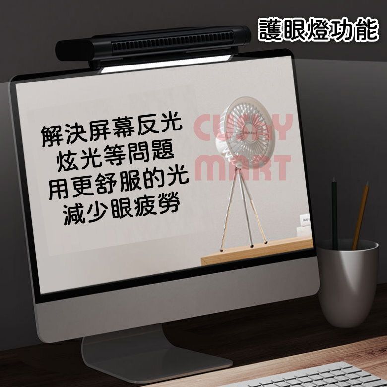 【護眼燈】內建螢幕燈減少反光,燈光角度和色溫可調,降低眼睛疲勞。