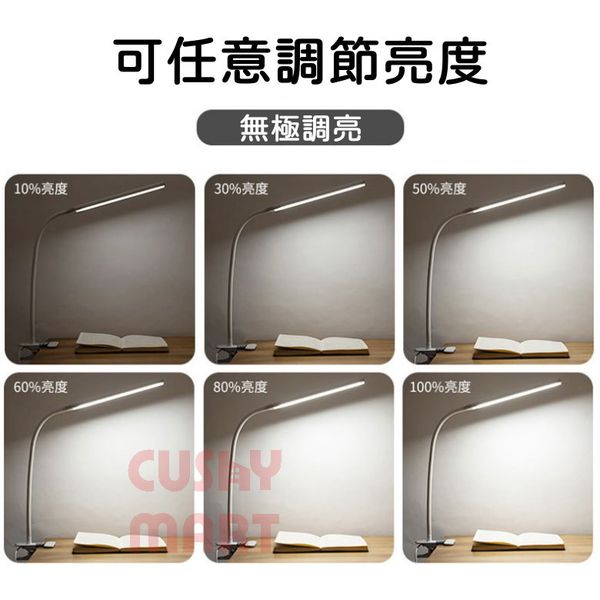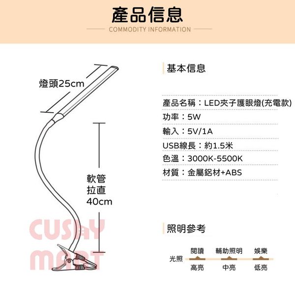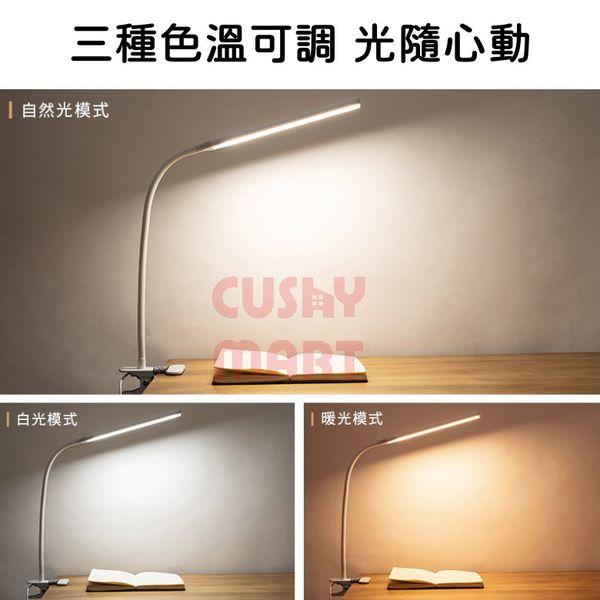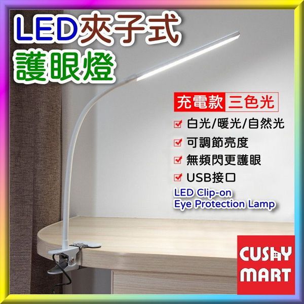 AGERU-LED夾子式三檔調光護眼燈(USB充電式)|節能LED夾子式書檯護眼燈|護眼無頻閃床頭燈【白色】