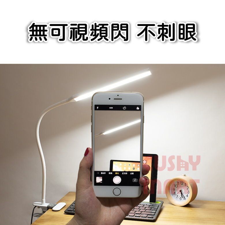 【可夾式設計】輕鬆固定在桌邊或床頭,不占空間。