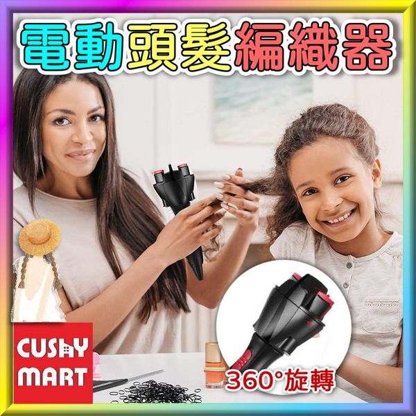 【使用方便】挑2束頭髮放入兩側髮勾內,鬆開按鈕即可夾住頭髮;向上推開關開始編織2條辮子頭髮,然後向下推開關將2條辮子結纏繞在一起,編織後取下編織器,最後用髮帶紮頭髮。
