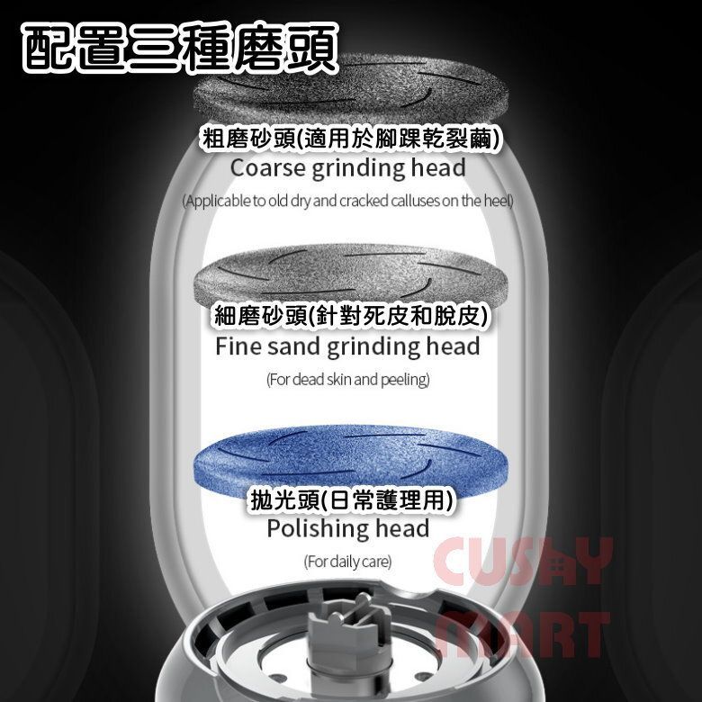 BodyRev-USB充電式電動磨腳器(附贈三種磨頭)|無線美足機【可去腳皮/去除死皮/去硬皮/去角質】