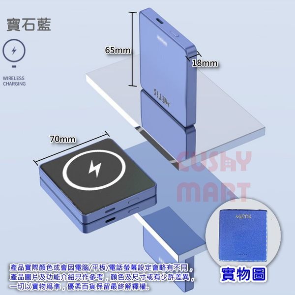 ⚡【強大的吸附能力】磁吸式無線充電器讓充電變得輕而易舉。適用於任何磁性手機保護套。 1.8cm厚的移動電源僅重150g,不會對手機造成負擔。