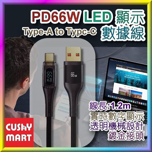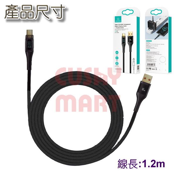 USAMS-PD66W數顯充電線 數據線 USB線 (Type A 轉 Type C 1.2米)[黑色](平行進口)