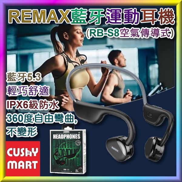 REMAX-RB-S8 藍牙5.3 空氣傳導式防水無線聽歌及可通話運動耳機 藍牙耳機 (黑色)[平行進口]