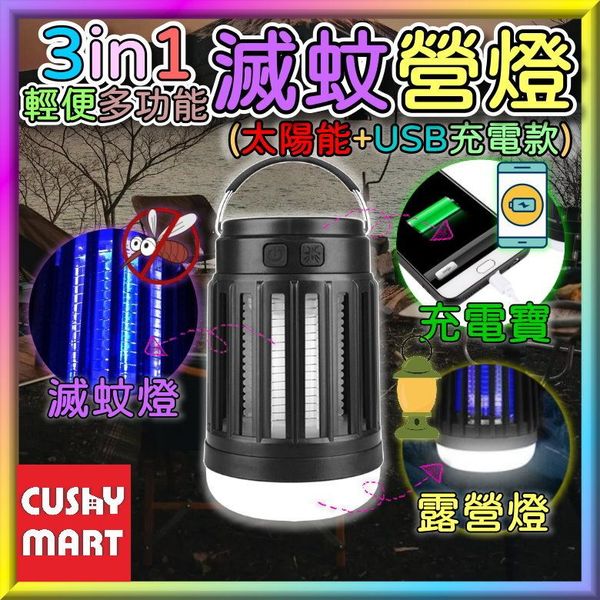 AGERU-便攜式3合1太陽能滅蚊露營燈[黑色]
