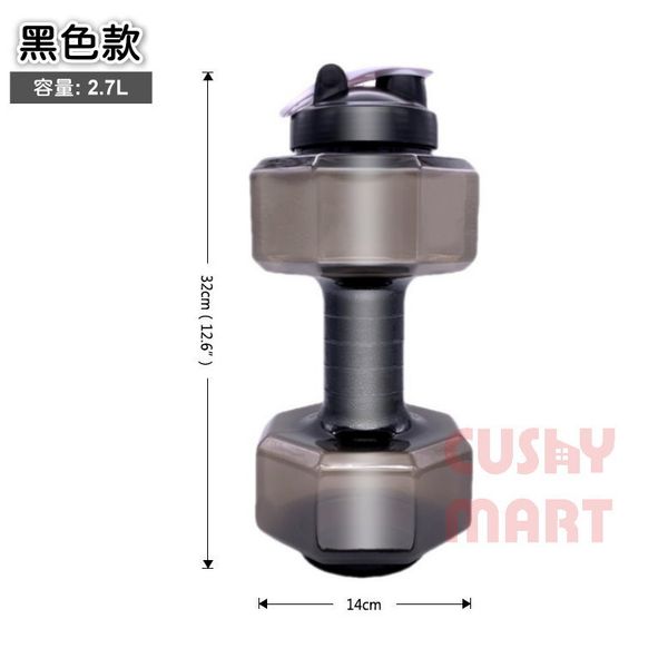 AGERU-2.7L健身啞鈴形運動水樽[透明黑色]