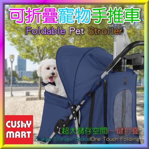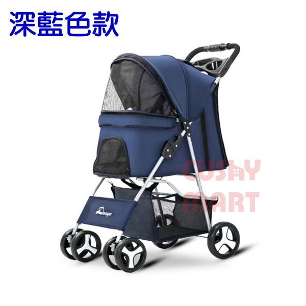 AGERU-四輪輕便可折疊寵物手推車|貓狗出行手推車 (深藍色)