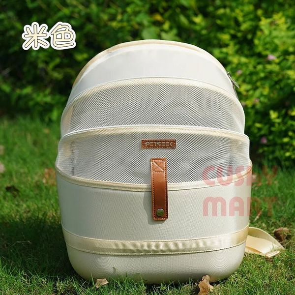 AGERU-簡約高透氣寵物雙肩太空艙背包|貓貓單肩斜孭袋|狗狗外出包|外出便攜寵物背包|寵物袋【米色】