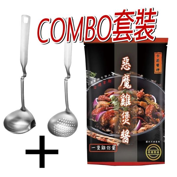 卡莉醬神-惡魔雞煲醬 (香辣惹味 香港製造) 紅色+湯勺及漏勺套裝