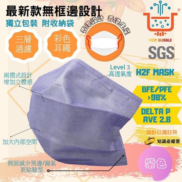 Hot Bubble-HotBubble - H2F成人口罩(紫色/10pcs)(新舊包裝隨機發送)