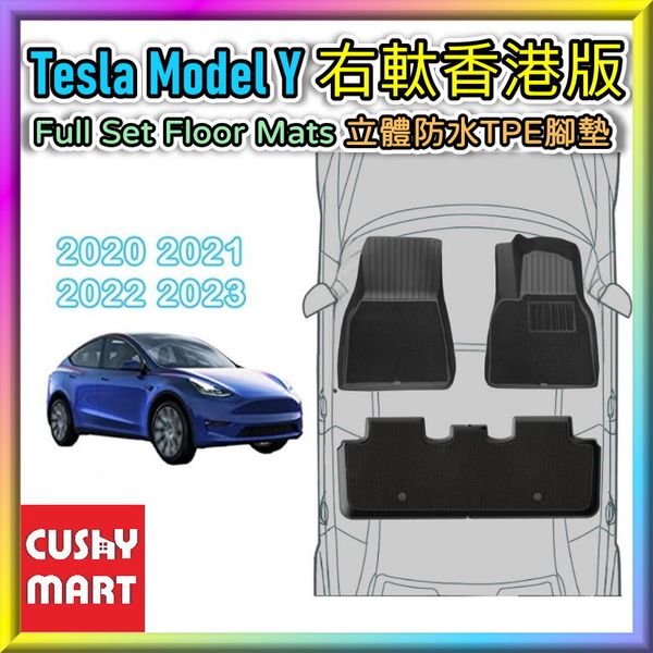 優柔百貨-Tesla Model Y 專用 立體防水TPE腳墊 - 雪妮絲毯面腳踏墊(香港右軚)