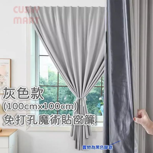AGERU-魔術貼全遮光窗簾 (灰色,100x100cm) 免打孔窗簾 家居/車用窗簾