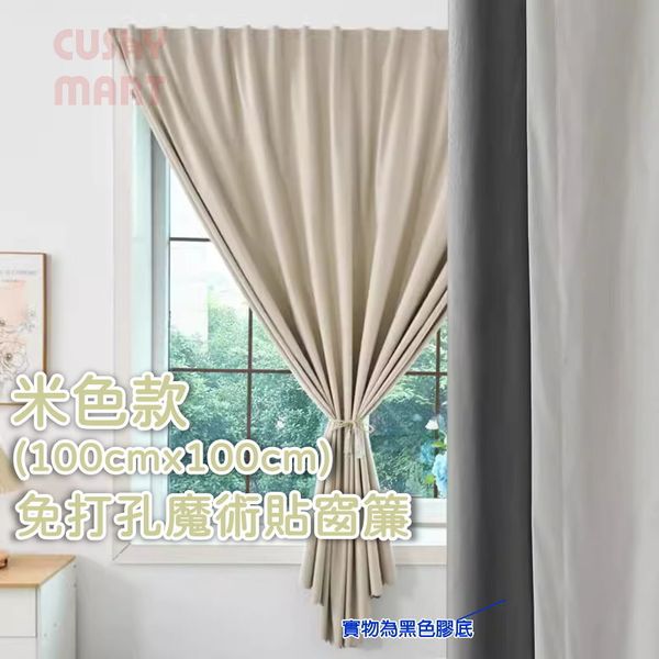 AGERU-魔術貼全遮光窗簾 (米色,100x100cm) 免打孔窗簾 家居/車用窗簾