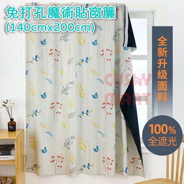 AGERU-魔術貼全遮光窗簾 (花葉,140x200cm) 免打孔窗簾 家居/車用窗簾