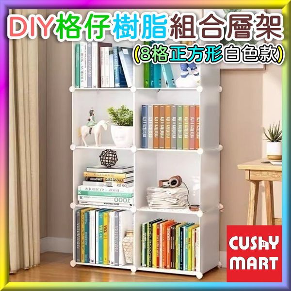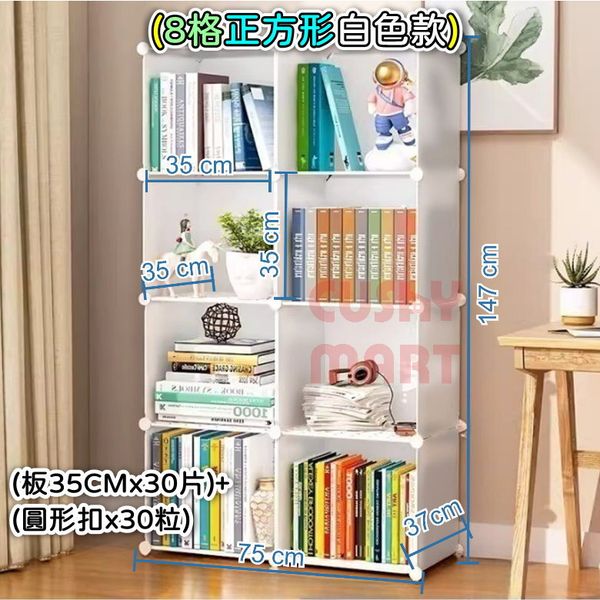 AGERU-DIY格仔樹脂組合層架-8格-(白色,板35CMx30片+圓形扣x30粒) 組合櫃分隔收納櫃 魔片置物櫃層櫃 收納架置物架 玩具儲物櫃整理箱 分隔架